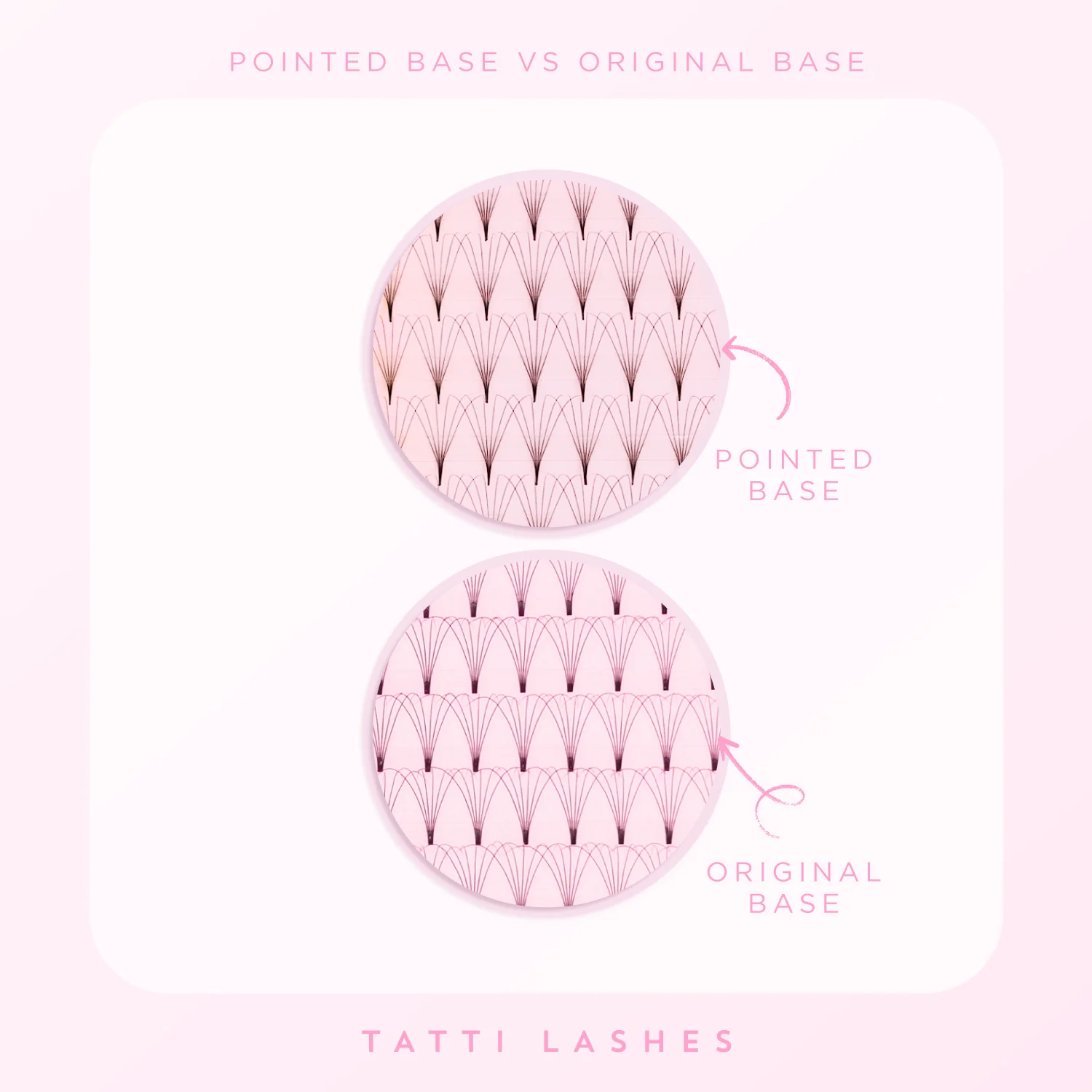 Our Pre-Fanned Russians are available in two styles of base, a pointed base or our original flat base. You can choose your preference in the dropdown.