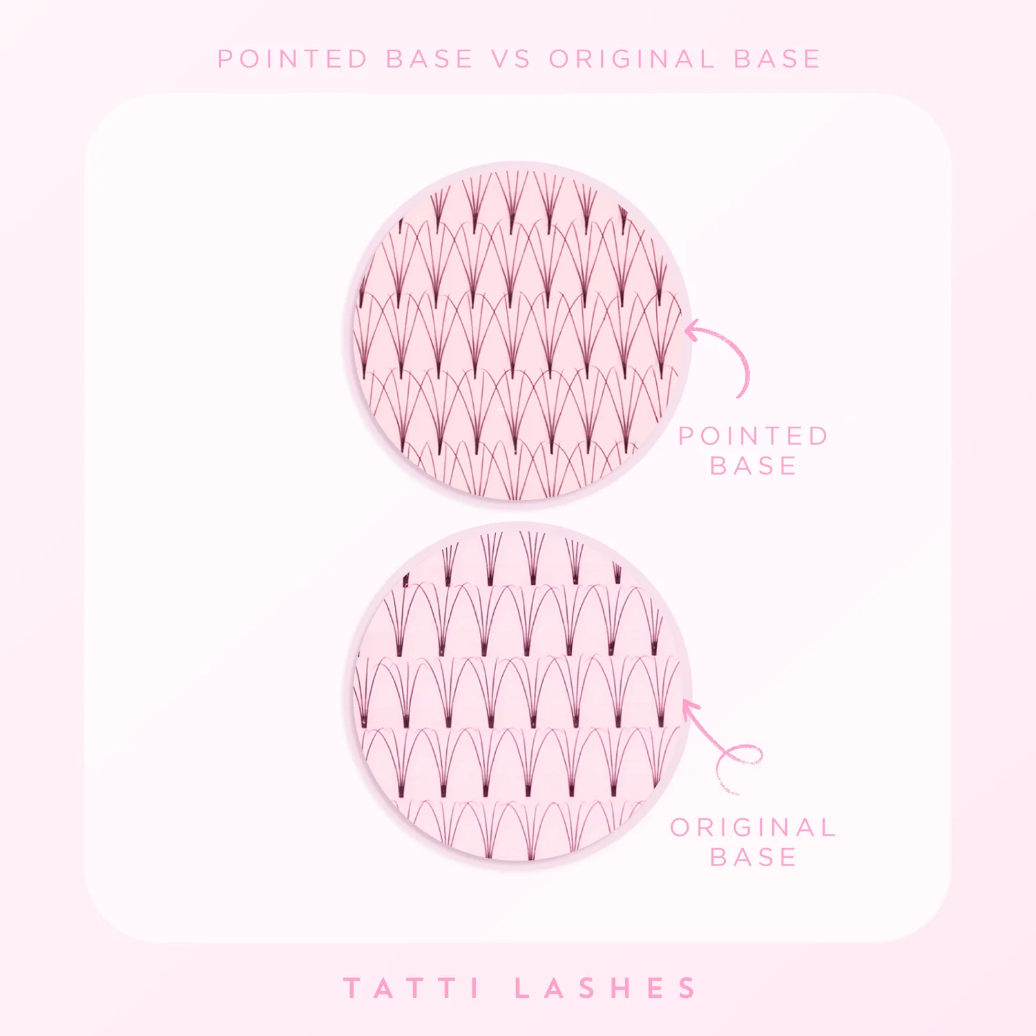 Our Pre-Fanned Russians are available in two styles of base, a pointed base or our original flat base. You can choose your preference in the dropdown.